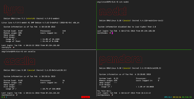 You have the main information of your server, plus the hostname written in a nice red ASCII style.