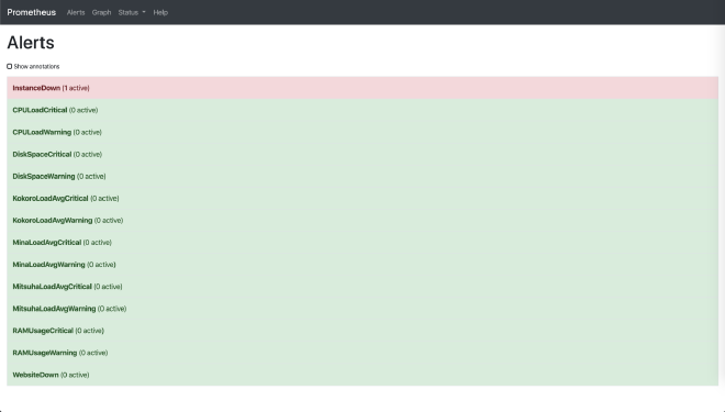All of the Prometheus services are basically Go binaries that you have to deploy yourself, there is no packaging. This is great because you can set them up however you want, but it’s more work keeping them up-to-date. I have to admit I used to keep my roles and servers up-to-date each new release at first, but I haven’t updated anything in months.