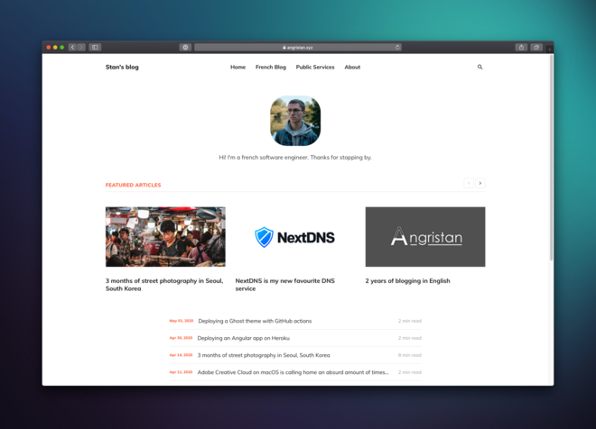 As a refresher, since I started this blog I have been running my fork of the default Ghost theme. It is open-source an available on GitHub. The default theme is great and well maintained.