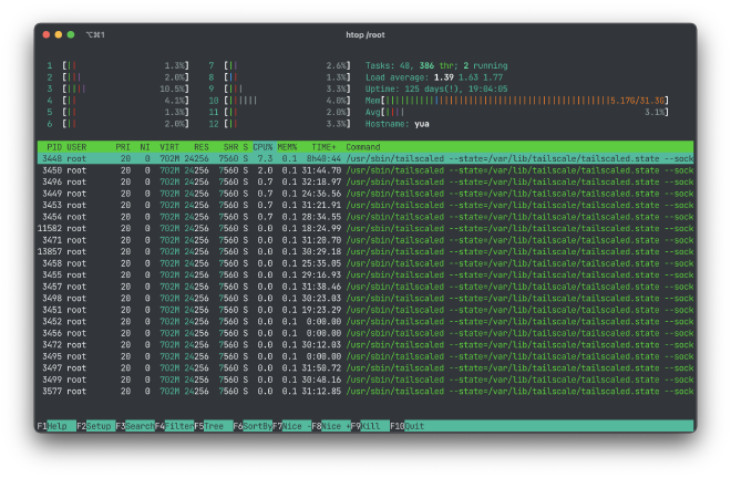 Also, it constantly uses at least of few % of CPU, even when no traffic is going through the tailscale0 interface.